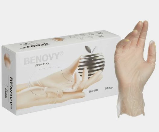 Перчатки виниловые Benovy 50 пар/упк, Прозрачный, S, Винил